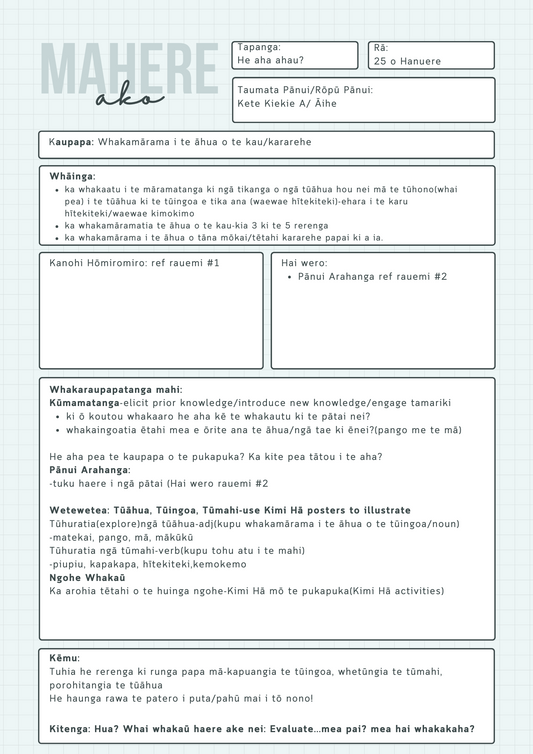 - Mahere Ako=Sample Lesson Plans based on NKK readers/books