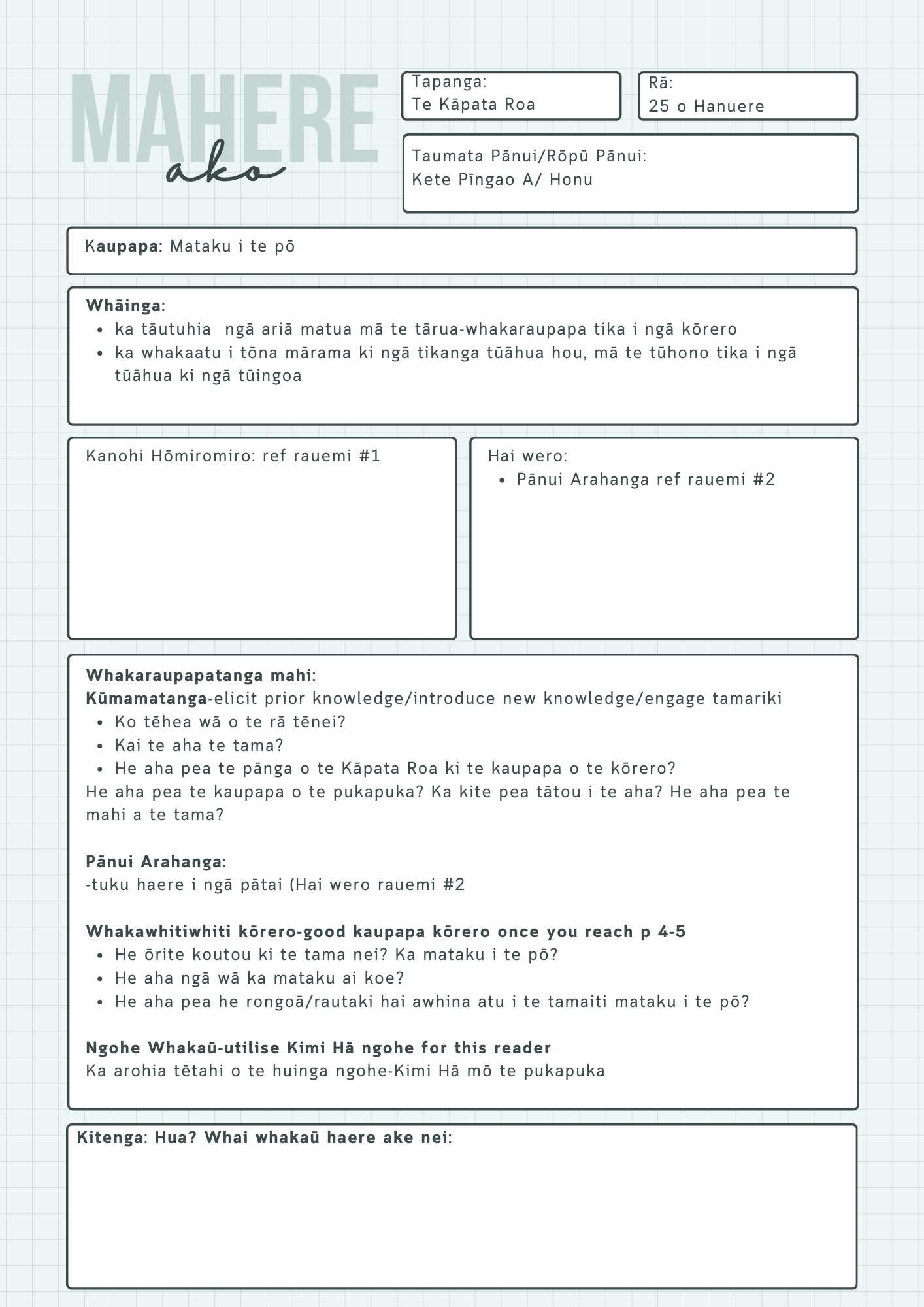 -Mahere Ako/Lesson Plan